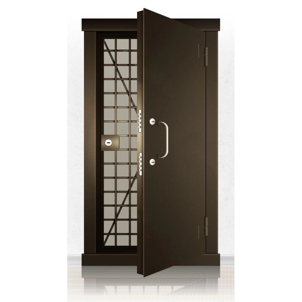 Металлические двери КХО и КХН представляют собой входные блоки, обладающие высоким уровнем взломостойкости и состоят из трех основных элементов: усиленного каркаса, сплошного металлического полотна и решетчатой двери. Дверной блок изготавливается из стального уголка 100*100 мм. Места крепления блока к стене цементируются и закрываются стальными наличниками шириной 40 мм. Крепеж заходит вглубь стены на 80 мм. В конструкции внешней створки монтируются ребра жесткости, для обшивки используется сталь толщиной не менее 3 мм. Внутренняя решетка изготавливается из прутка диаметром 16 мм. Размер ячеек решетки должен составлять не более 15 на 15 см. В точках пересечения прутья надежно приваривают друг к другу. В КХО и КХН необходимо поддерживать определенную температуру и влажность. Для этого внутреннее пространство глухой двери заполняется теплоизоляционным материалом, а по периметру двери приклеивается уплотнитель. Такие двери оборудуются замками с повышенным уровнем взломостойкости. Специализированные двери КХО и КХН в Туле могут быть оснащены сигнализацией, в конструкции могут быть проушины для навесного замка и элементами для опечатывания. Если идет речь о двери в комнату хранения оружия, в створке оборудуется окно для выдачи оружия и спец. средств, которое накрывается стальной дверцей.