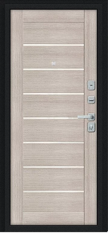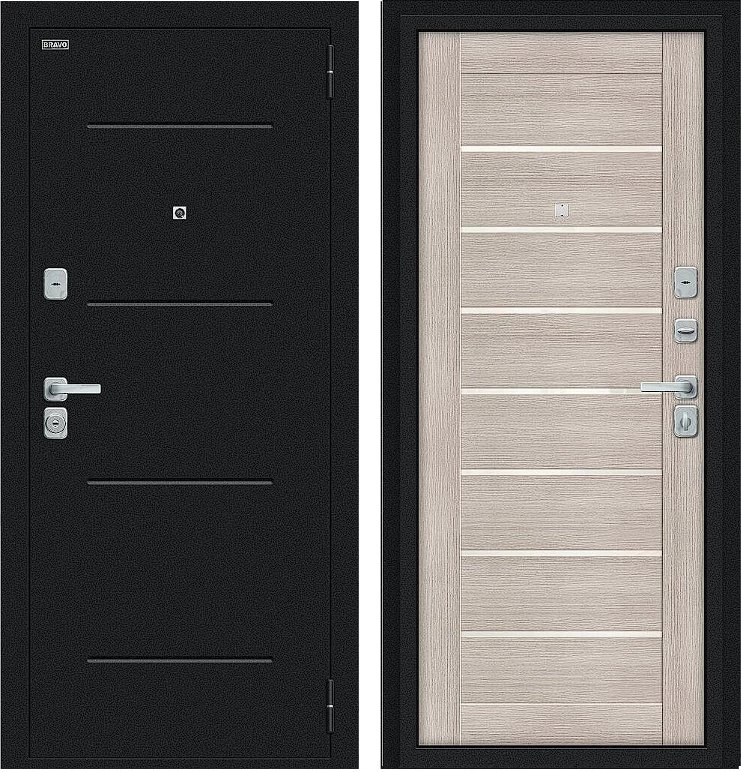 Надежная входная Дверь Браво Техно/BChrome Букле черное/Cappuccino Melinga премиум класса по цене 34 399 руб. Большая толщина стали защитит от проникновения в ваш дом, квартиру или коттедж. Используется очень качественная фурнитура: замки, цилиндры, ручки, защелки. Покрытие и отделка двери изготовлено под внимательным контролем производителя. Дверь имеет долгий срок службы и гарантию.