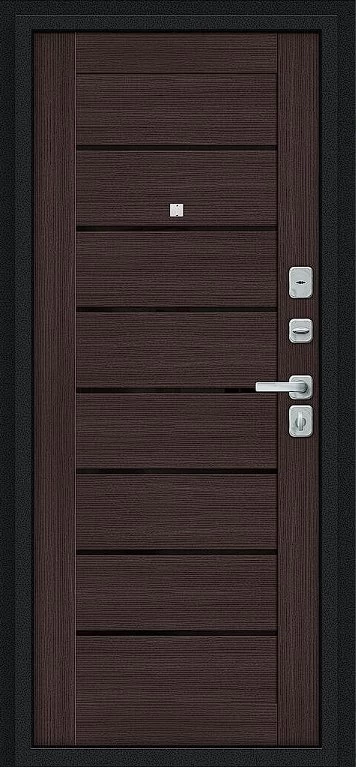 Дверь Браво Техно/BChrome Букле черное/Wenge Melinga - недорогая эконом класса по цене 3 899 руб., отлично подходит для временной установки в квартиру под сдачу, строительство, ремонт. Не смотря стоимость, модель хорошего качества.